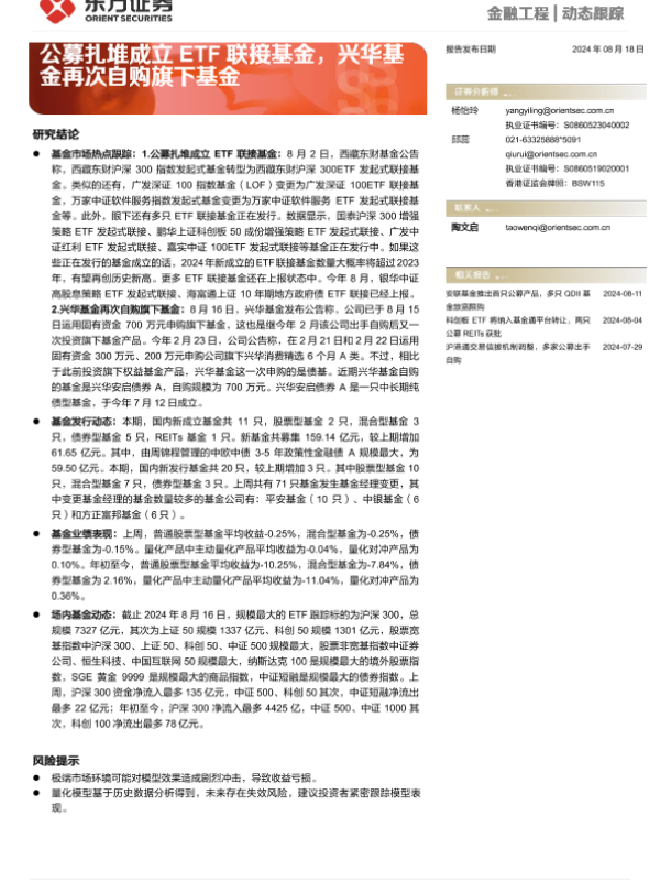 【东方证券】【20240818】金融工程动态跟踪:公募扎堆成立ETF联接基金,兴华基金再次自购旗下基金-14页 行业研究