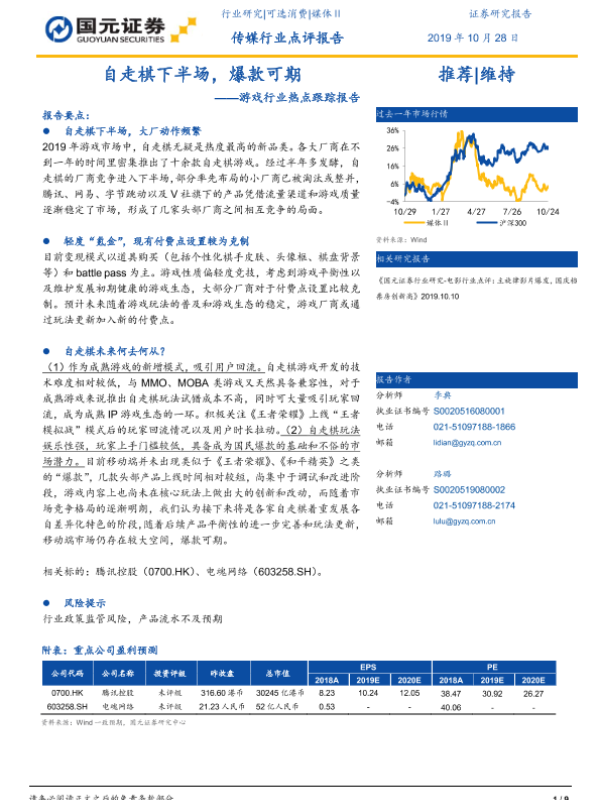 【国元证券】【20191028】自走棋下半场,爆款可期——游戏行业热点跟踪报告-9页 行业研究