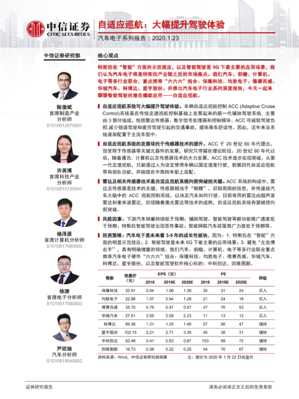 【中信证券】【20200123】汽车电子行业系列报告:自适应巡航,大幅提升驾驶体验-11页 行业研究
