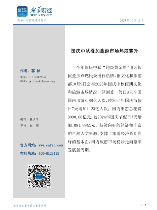 【新华社中国经济信息社】【202510】国庆中秋叠加旅游市场热度攀升-5页 市场调研