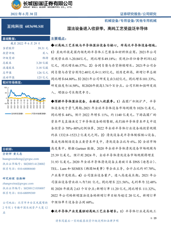 【长城国瑞证券】【20220630】湿法设备进入收获季,高纯工艺受益泛半导体-25页 行业研究