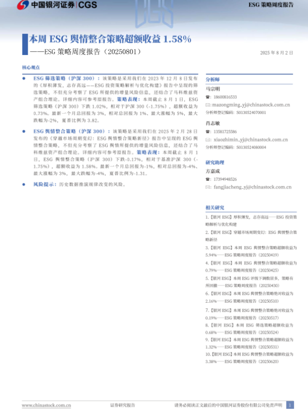 【银河证券】【20250801】ESG策略周度报告-8页 证券期货研究报告