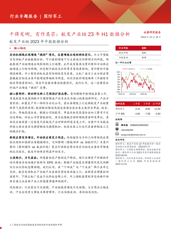【西部证券】【20231019】国防军工行业航发产业链2023年中报数据分析:干将发硎,有作其芒,航发产业链23年H1数据分析-17页 行业研究