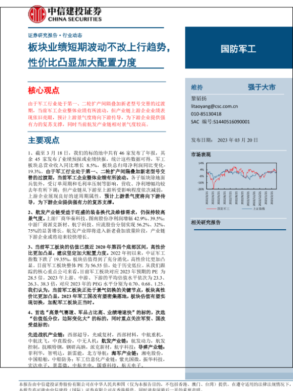 【中信建投证券】【20230320】国防军工行业:板块业绩短期波动不改上行趋势,性价比凸显加大配置力度-31页 行业研究