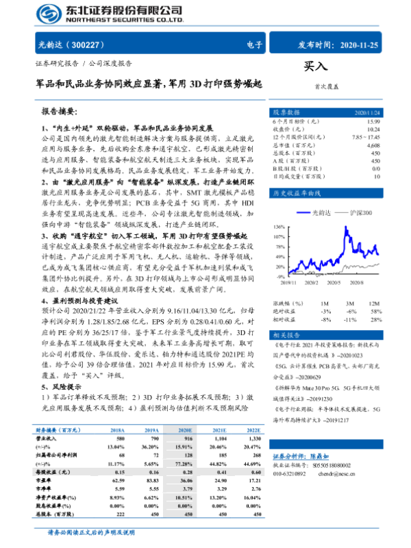【东北证券】【20201125】军品和民品业务协同效应显著,军用3D打印强势崛起-25页 行业研究