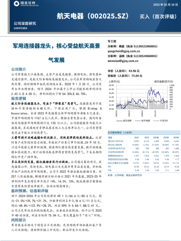 【国金证券】【20250216】国金证券-航天电器-军用连接器龙头,核心受益航天高景气发展-28页 行业研究