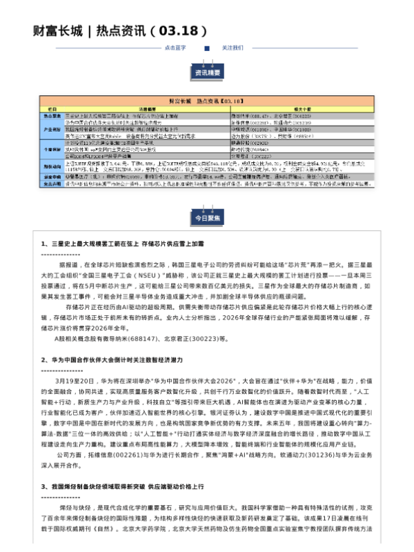 【财富长城】【202603】热点资讯(03.18)-3页 证券期货研究报告