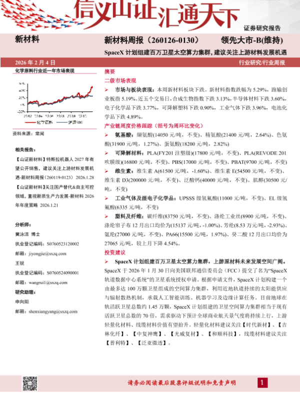 【山西证券】【202602】新材料周报(260126-0130)领先大市-B(维持)-23页 证券期货研究报告