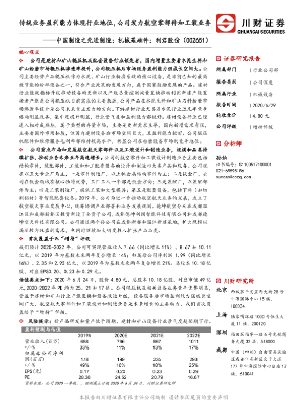【川财证券】【20200629】传统业务盈利能力体现行业地位,公司发力航空零部件和工装业务-27页 证券期货研究报告