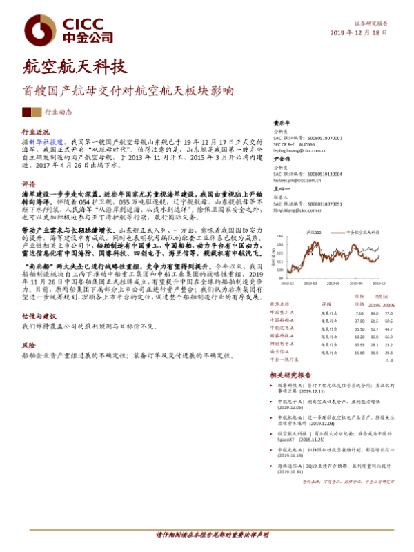 【中金公司】【20191218】20191218-中金公司-航空航天科技行业动态:首艘国产航母交付对航空航天板块影响-5页 行业研究