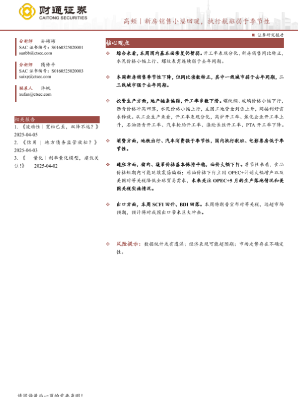 【财通证券】【20250406】高频|新房销售小幅回暖,执行航班弱于季节性-13页 证券期货研究报告