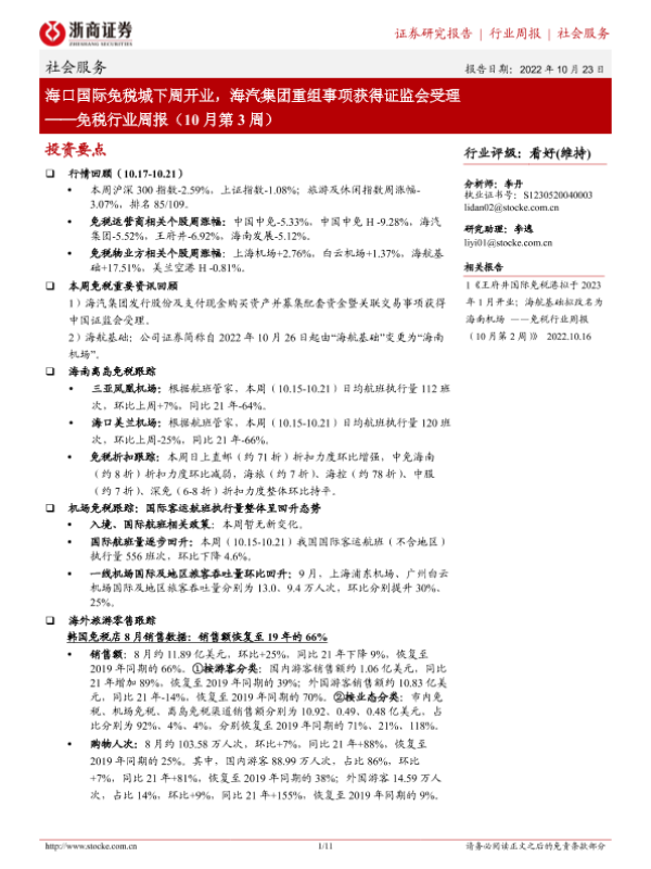 【浙商证券】【20221023】海口国际免税城下周开业,海汽集团重组事项获得证监会受理-11页 行业研究