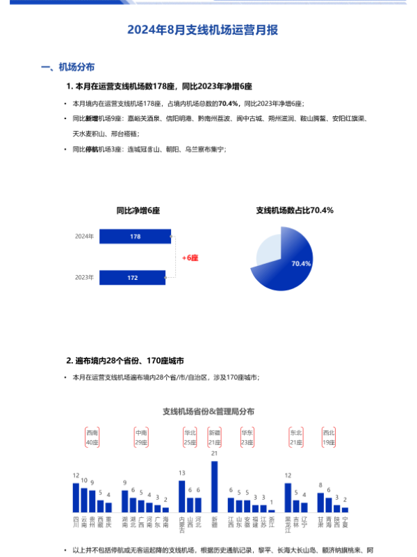 【航班管家】【202408】2024年8月支线机场运营月报-9页 行业研究