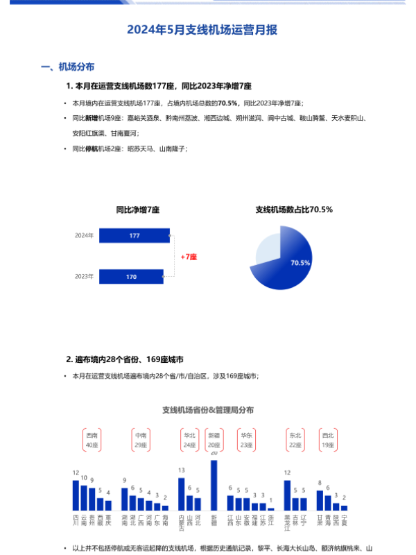 【航班管家】【202405】2024年5月支线机场运营月报-8页 行业研究
