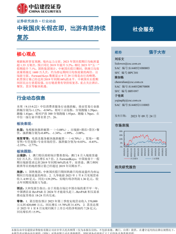 【中信建投证券】【20230924】社会服务行业:中秋国庆长假在即,出游有望持续复苏-30页 行业研究