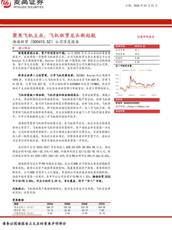 【麦高证券】【20250721】渤海租赁公司深度报告:聚焦飞机主业,飞机租赁龙头新起航-22页 公司研究