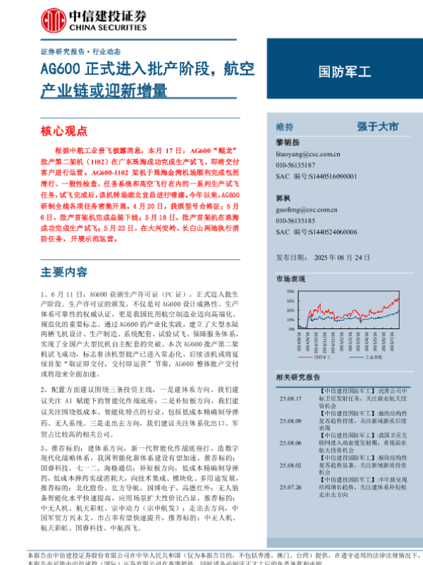 【中信建投证券】【202508】AG600正式进入批产阶段,航空产业链或迎新增量-22页 证券期货研究报告