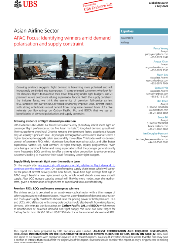 【UBS Securities Asia Limited】【20250707】APAC Focus Identifying winners amid demand polarisation and supply constraint-41页 行业研究