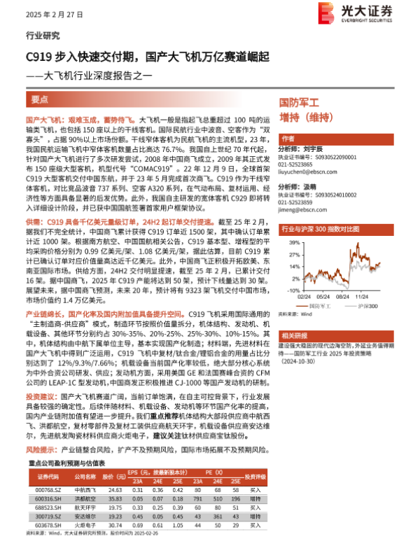 【光大证券】【20250227】大飞机行业深度报告之一:C919步入快速交付期,国产大飞机万亿赛道崛起-48页 行业研究
