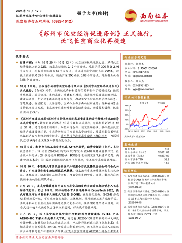 【西南证券】【202510】《苏州市低空经济促进条例》正式施行,沃飞长空商业化再提速-13页 证券期货研究报告