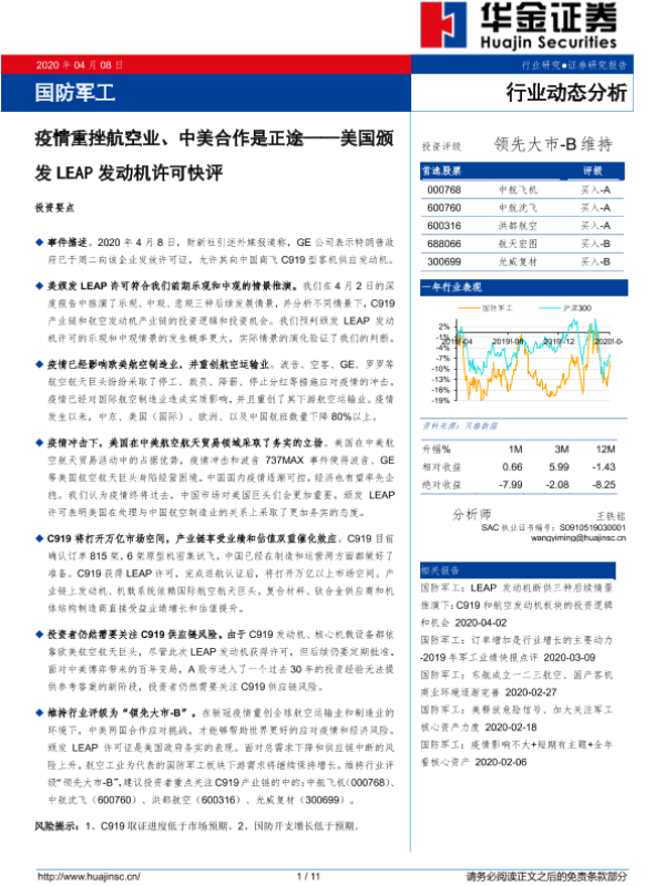 【华金证券】【20200408】20200408-华金证券-国防军工行业动态分析:美国颁发LEAP发动机许可快评-疫情重挫航空业、中美合作是正途-11页 行业研究
