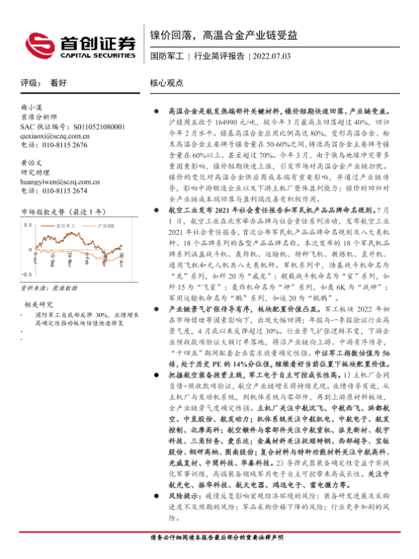 【首创证券】【20220703】20220703-首创证券-国防军工行业简评报告:镍价回落,高温合金产业链受益-7页 行业研究