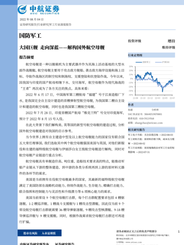 【中航证券】【20220804】国防军工_大国巨舰_走向深蓝--解构国外航空母舰-42页 行业研究
