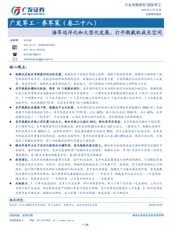 【广发证券】【20200324】海军远洋化和大型化发展,打开舰载机成长空间-23页 行业研究