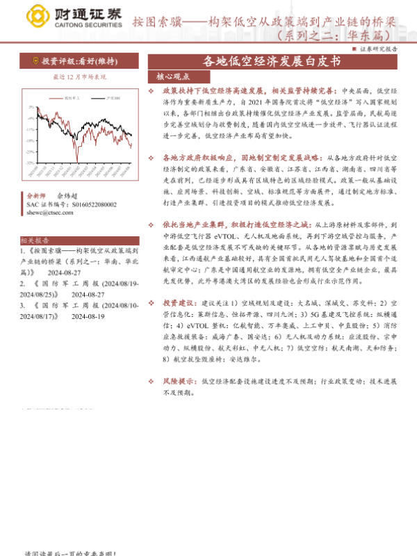 【财通证券】【20240902】国防军工行业各地低空经济发展白皮书:按图索骥——构架低空从政策端到产业链的桥梁(系列之二:华东篇)-43页 行业研究