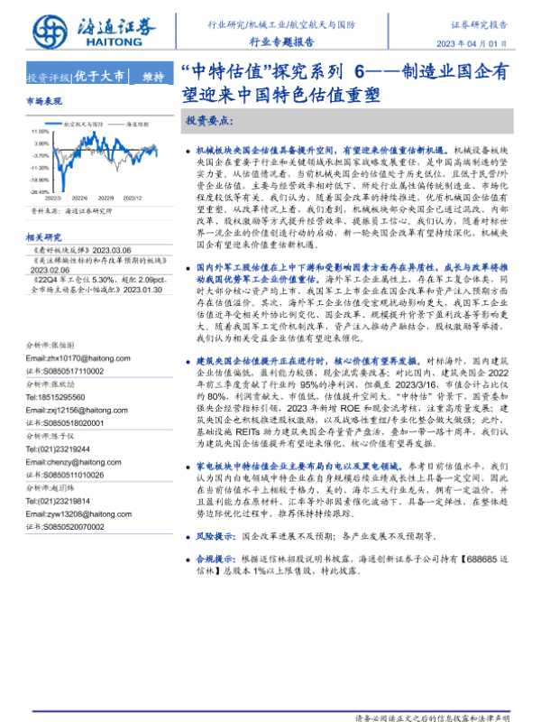 【海通证券】【20230401】20230401-海通证券-航空航天与国防:“中特估值”探究系列6-制造业国企有望迎来中国特色估值重塑-46页 行业研究