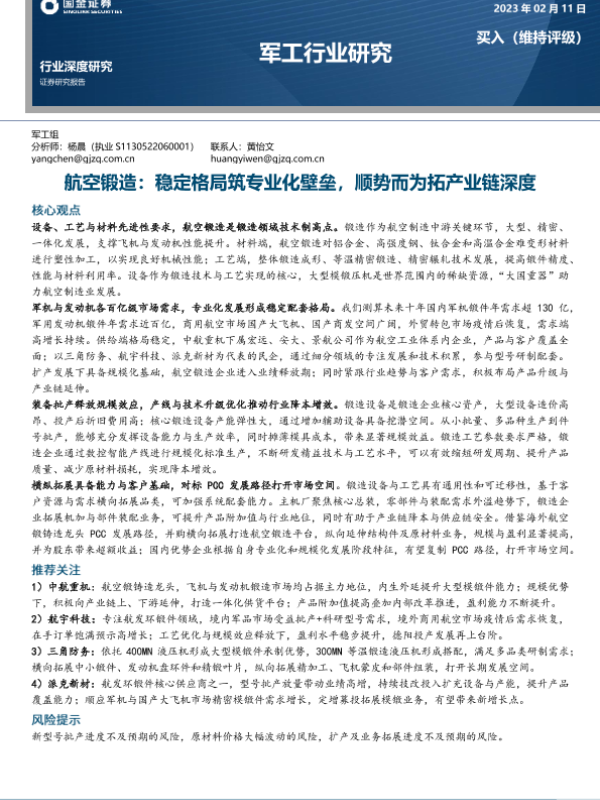 【国金证券】【20230211】航空锻造:稳定格局筑专业化壁垒,顺势而为拓产业链深度-30页 行业研究