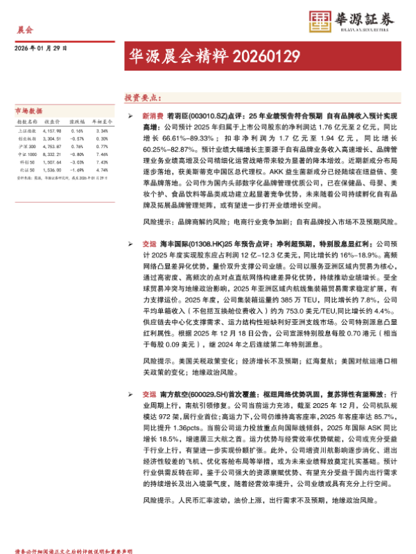 【华源证券】【202601】华源晨会精粹 20260129-7页 证券期货研究报告