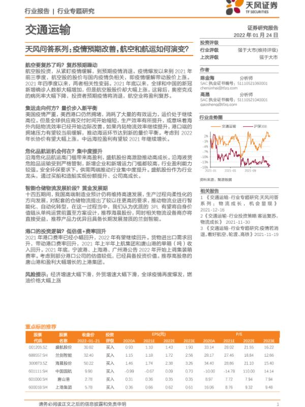 【天风证券】【20220124】交通运输行业天风问答系列:疫情预期改善,航空和航运如何演变?-15页 行业研究