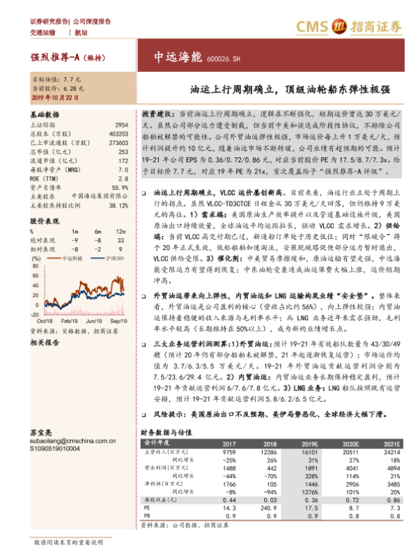 【海通证券】【20191022】油运上行周期确立,顶级油轮船东弹性极强-22页 行业研究