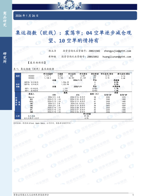 【国泰君安期货】【202601】集运指数(欧线):震荡市;04空单逐步减仓观望、10空单酌情持有-4页 证券期货研究报告