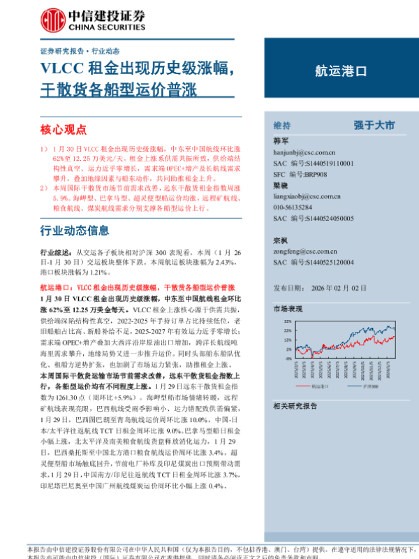 【中信建投证券】【202602】VLCC租金出现历史级涨幅,干散货各船型运价普涨-28页 证券期货研究报告