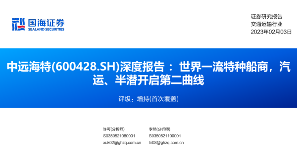 【国海证券】【20230203】深度报告:世界一流特种船商,汽运、半潜开启第二曲线-41页 行业研究