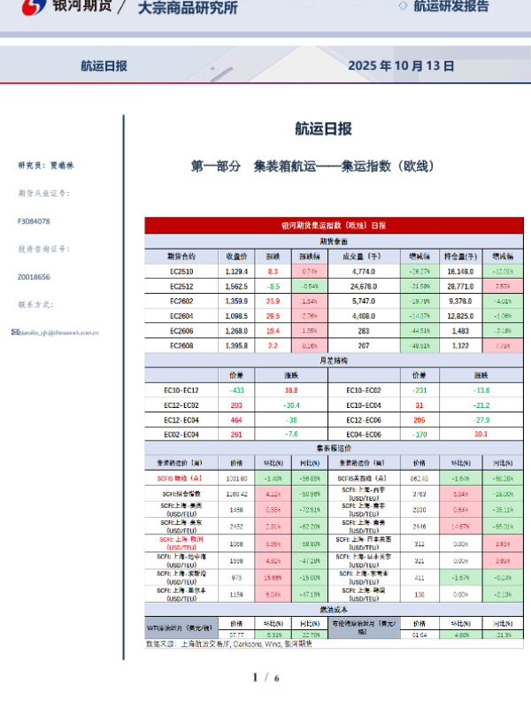 【银河期货有限公司 大宗商品研究所】【202510】航运日报-6页 证券期货研究报告