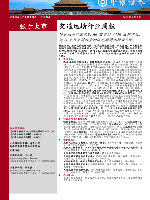 【中银证券】【202512】强于大市 交通运输行业周报-26页 证券期货研究报告