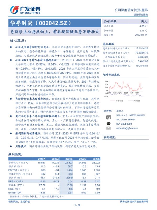 【广发证券】【20220214】华孚时尚(002042.SZ)色纺纱主业拐点向上,前后端网链业务不断壮大-24页 行业研究