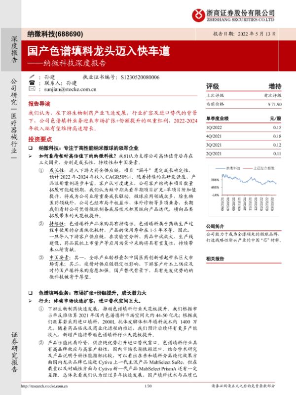 【浙商证券】【20220513】纳微科技深度报告:国产色谱填料龙头迈入快车道-30页 行业研究