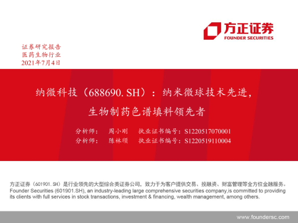 【方正证券】【20210704】纳微科技:纳米微球技术先进,生物制药色谱填料领先者-56页 行业研究