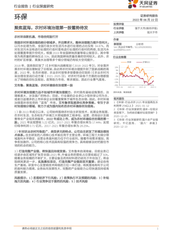 【天风证券】【20220622】环保行业深度研究:聚焦蓝海,农村环境治理第一股蓄势待发-18页 行业研究