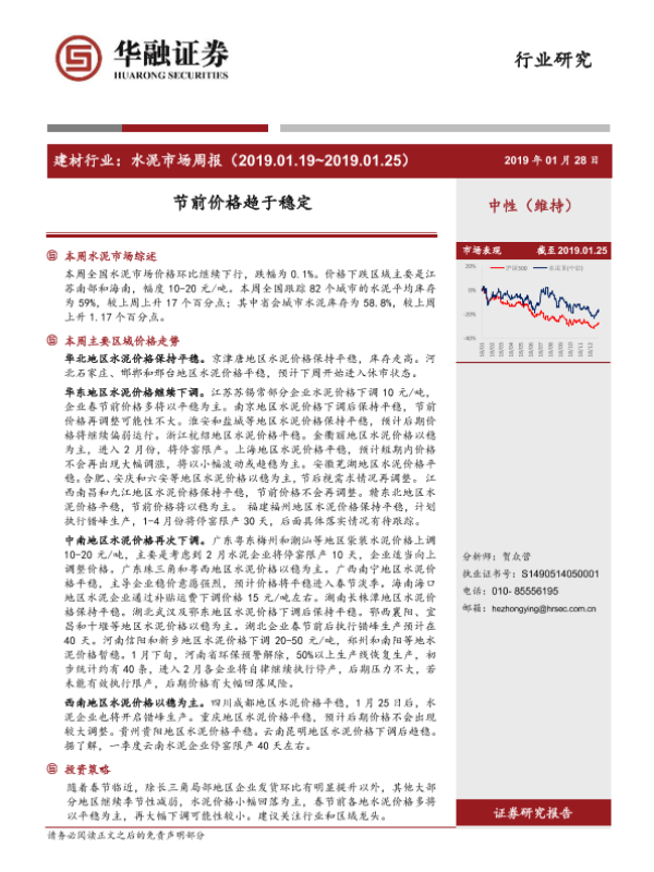 【华融证券】【20190128】水泥市场周报:节前价格趋于稳定-13页 行业研究