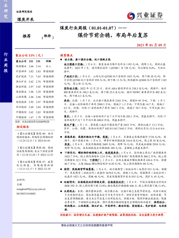 【兴业证券】【20230109】20230109-兴业证券-煤炭行业周报:煤价节前企稳,布局年后复苏-11页 行业研究