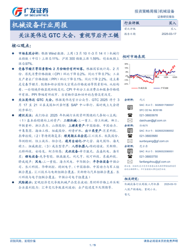 【广发证券】【20250317】20250317-广发证券-机械设备行业周报:关注英伟达GTC大会,重视节后开工链-19页 行业研究