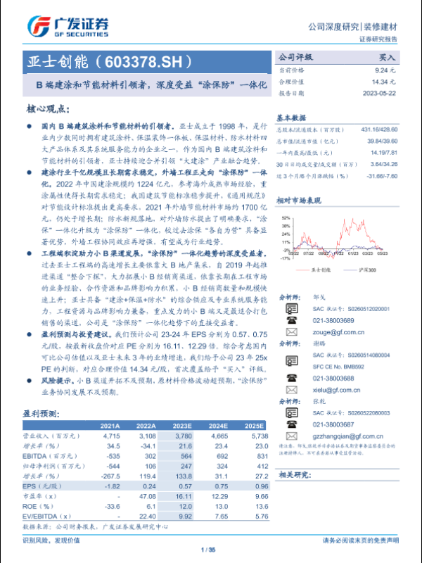 【广发证券】【20230522】亚士创能(603378.SH)B端建涂和节能材料引领者,深度受益“涂保防”一体化-35页 行业研究