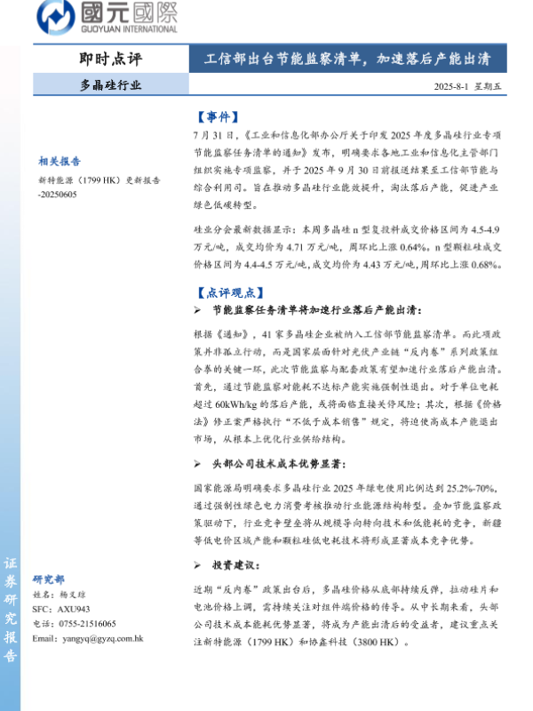【国元国际】【20250801】工信部出台节能监察清单,加速落后产能出清-2页 证券期货研究报告