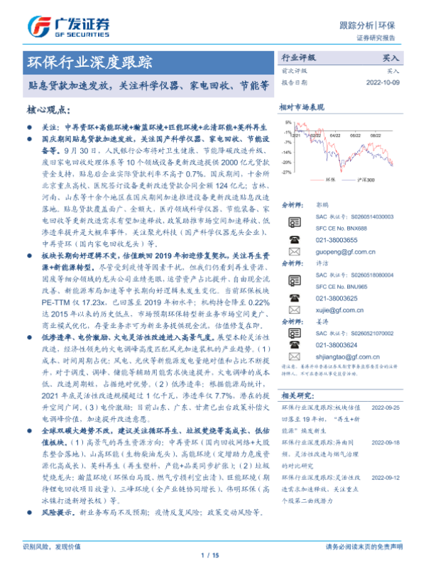 【广发证券】【20221009】环保行业深度跟踪:贴息贷款加速发放,关注科学仪器、家电回收、节能等-15页 行业研究