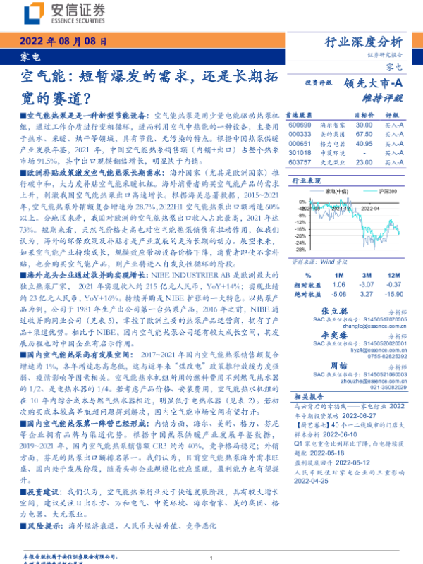 【安信证券】【20220808】家电行业:空气能,短暂爆发的需求,还是长期拓宽的赛道-18页 行业研究